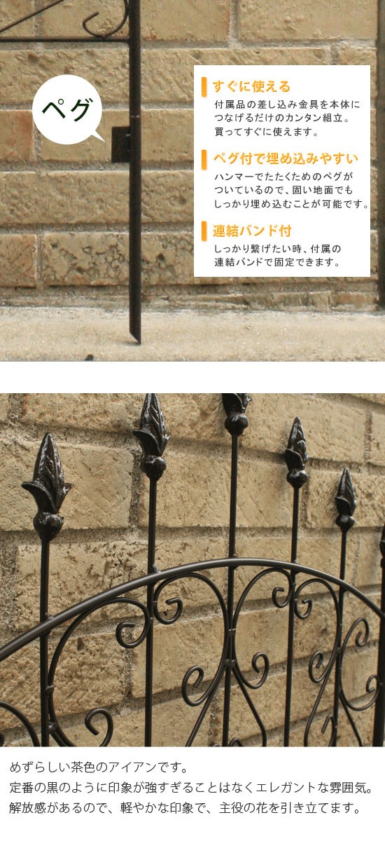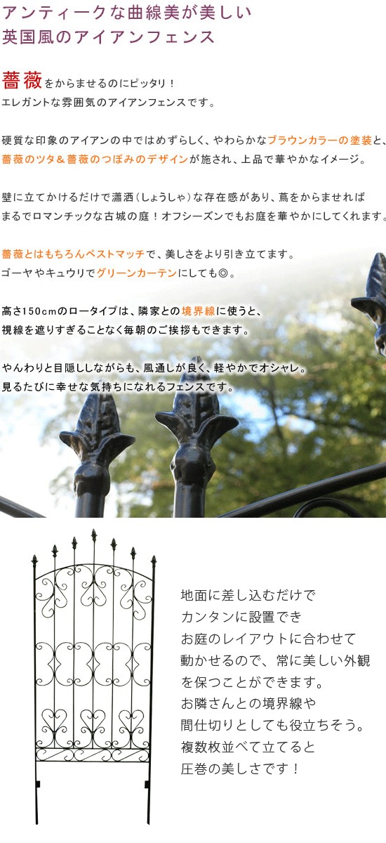 送料無料 アイアン ガーデンフェンス 高さ150cm 4枚セット トレリス 庭 ゲート かきね ガーデン雑貨 ガーデニングフェンス 仕切り 目隠し つるバラ グリーンカーテン 緑のカーテン グリーンフェンス 垣根 アンティーク風 ばらモチーフ クラシック 雑貨 シンプル ブラウン(北欧 おしゃれ 安い)