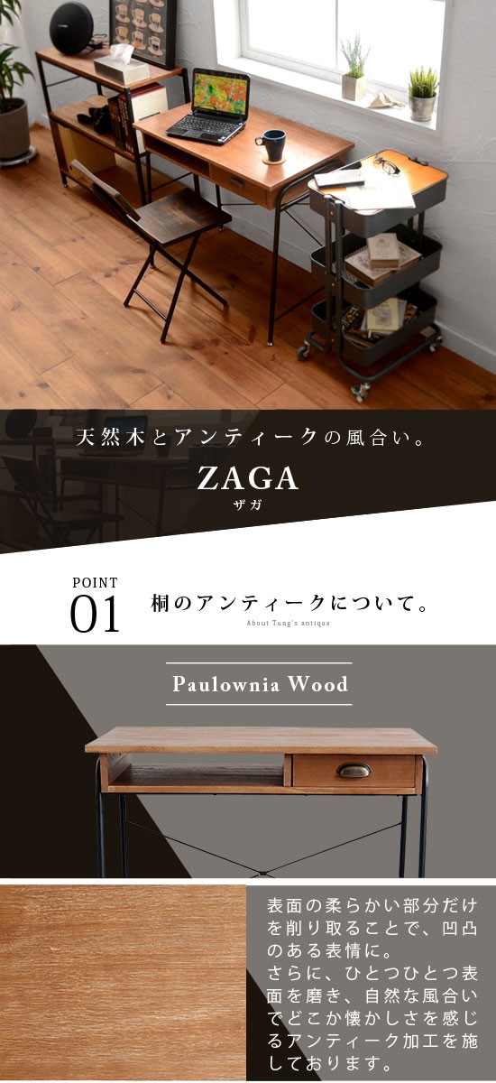 天然木 アンティーク ワークデスク 幅86cm ザガ