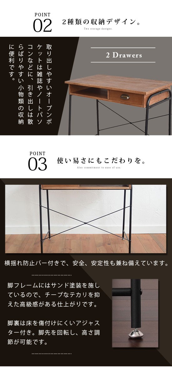 送料無料 ワークデスク 引き出し付き 木製 おしゃれ パソコンデスク 幅86cm 奥行47cm 高さ73cm 省スペース コンパクト ハイタイプ オフィスデスク ヴィンテージ デスク 北欧 書斎机 PCデスク 学習机 机 つくえ アンティーク 収納 桐 天然木 ワンルーム 一人暮らし ケース (北欧 おしゃれ 安い)