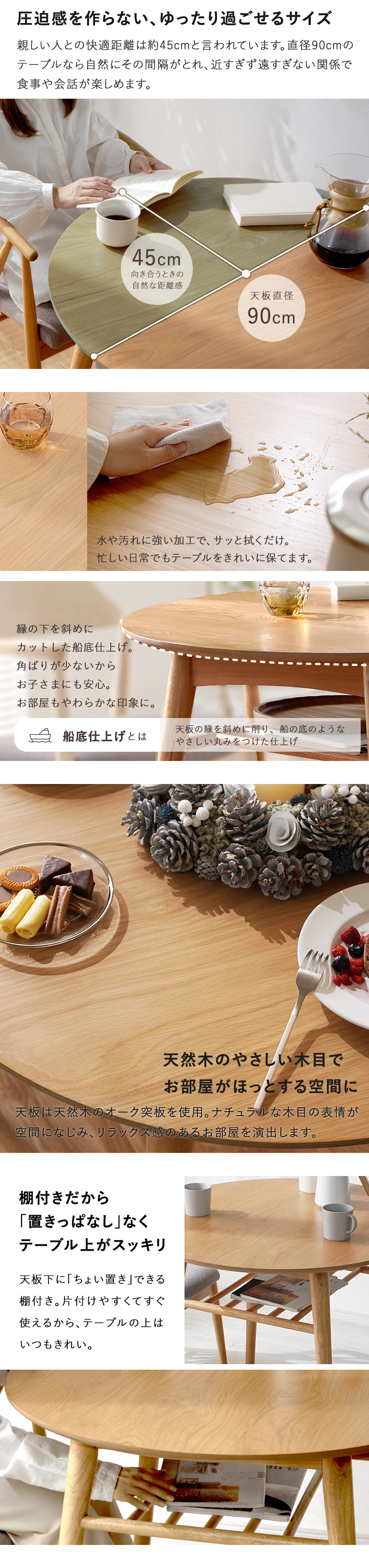 ダイニングテーブル 丸テーブル 単品 2人 丸 円形 円卓 円 丸型 テーブル 二人用 二人 高さ 70cm 幅 90cm 棚 収納 北欧 木製 天然木 コンパクト 木 ナチュラル