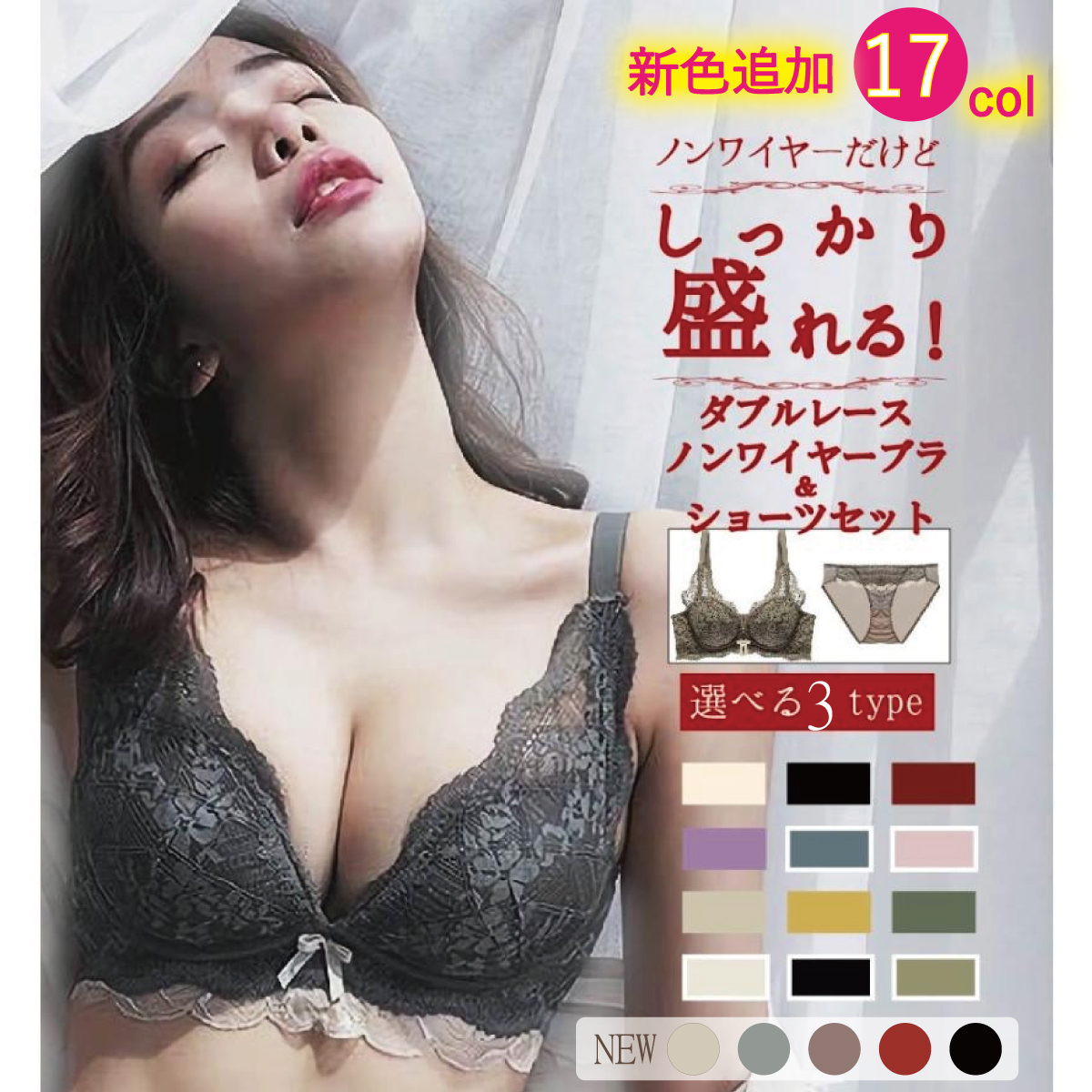 ブラジャー ショーツセット ナイトブラ ノンワイヤー セット 20代 30代 40代 50代 育乳 谷間 盛れる 補正ブラ 脇肉 脇高
