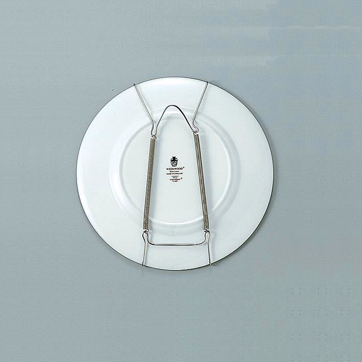 針金のツメとバネでお皿を程よくホールドすることで、壁のフック等に引っ掛けることができます。