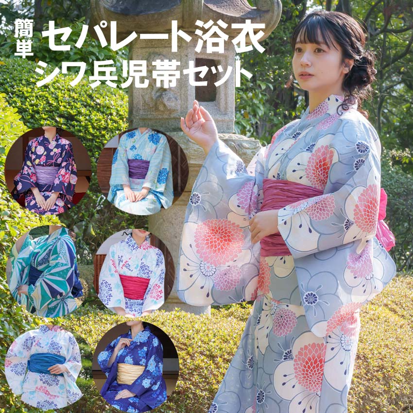 レディース セパレート 浴衣 大人 シワ兵児帯付き 2点セット 簡単 二部式 ゆかた 女性