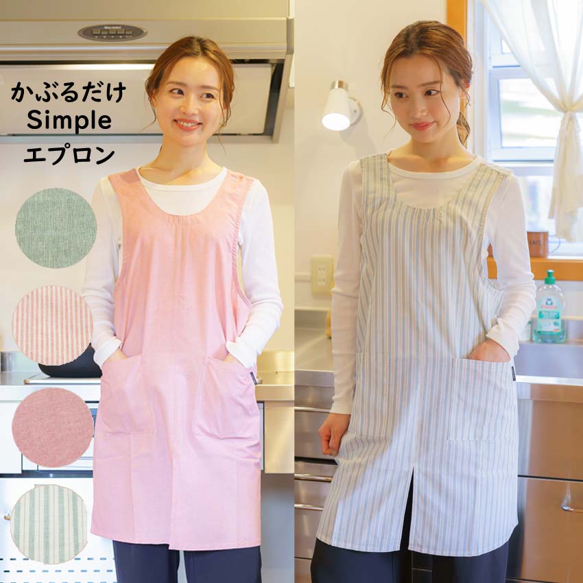 エプロン かぶるだけ 前スリットで歩きやすい お尻が隠れる シンプル エプロン