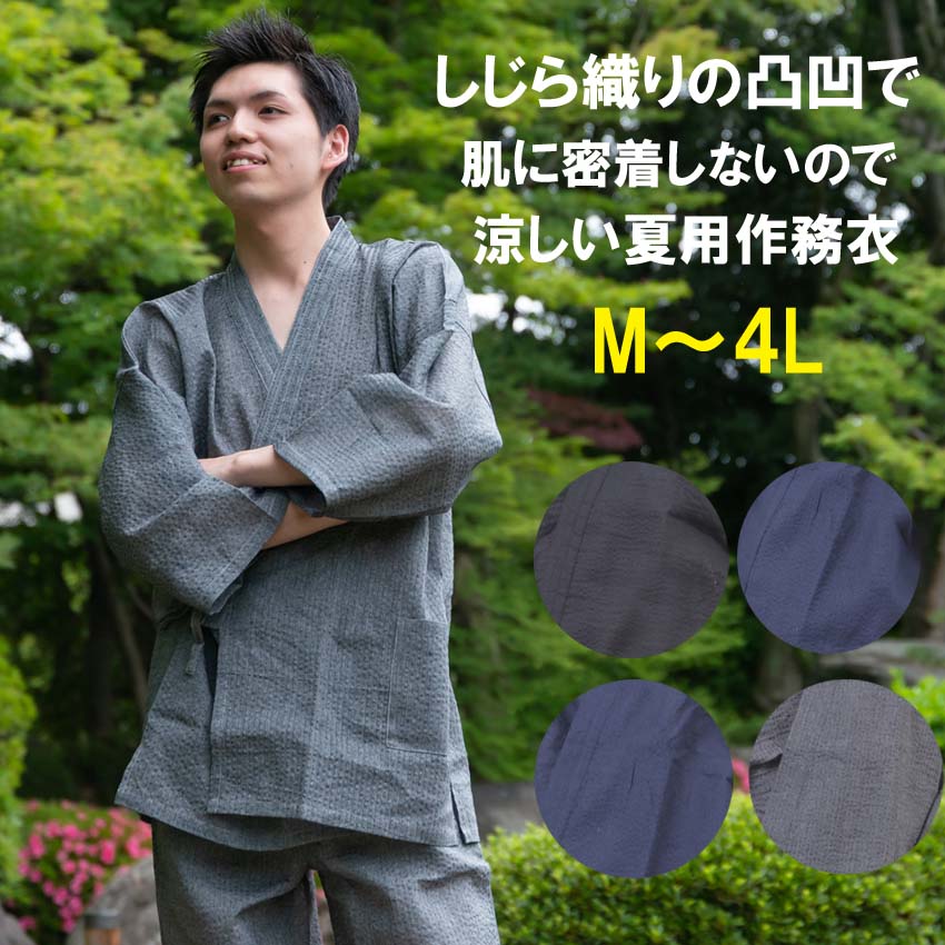 作務衣 夏用 メンズ 綿100% しじら織り 涼しい さむえ 男性 M L LL
