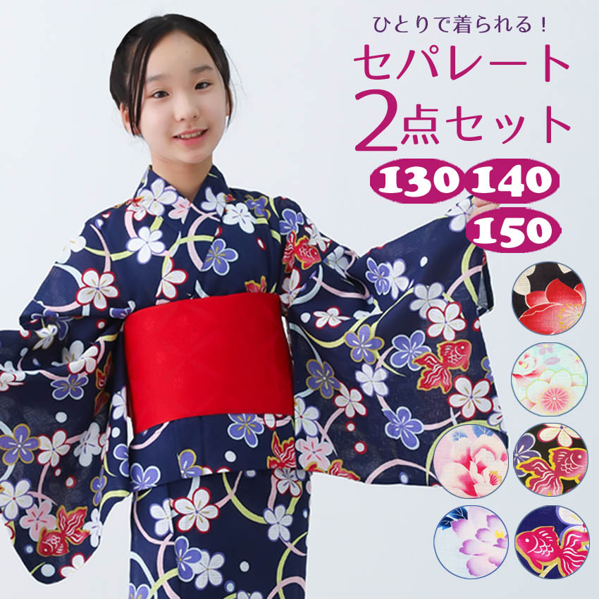 子供 浴衣 簡単 二部式 セパレート ゆかた 作り帯付きセット 女の子 140 150