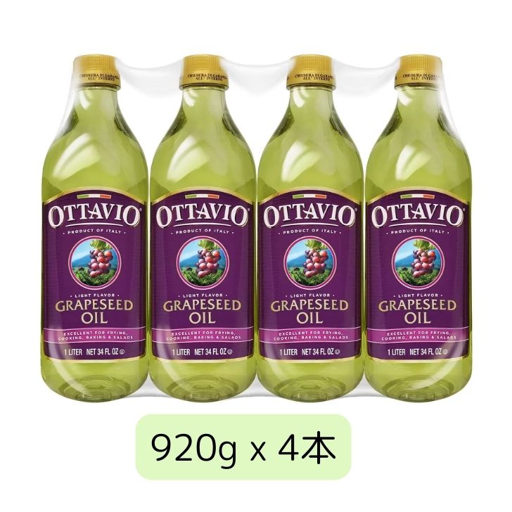 オッタビオ グレープシードオイル 920g x 4本 ぶどう油 ブドウ油 油 グレープ シード オイル 大容量 まとめ買い 瓶 イタリア産 調理油 料理 調理用