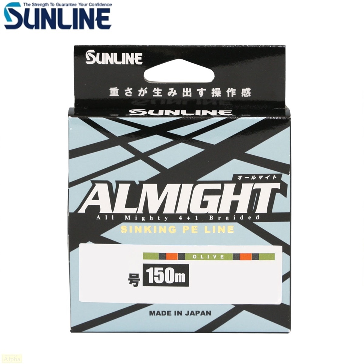 サンライン オールマイト 150m 0.4号 オリーブ 2mマーキング 高比重 PEライン