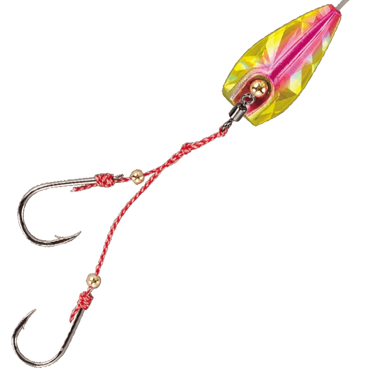 リフト&フォールで妖しくゆらめくインチク形状! ロングシャンクが海エビをしっかりホールドする小鯛鈎使用。 ヘッドとフックを遊動にする事によりフックUP後の鯛特有の首振りによるバラシを激減。 またフォール中にバイトしてきた鯛に違和感を与えず喰い込ませる事が可能になりました。