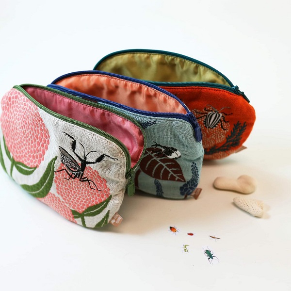 虫たちとデザインに合わせて、それぞれすこーし形が独特なのも愛おしくなるポーチです。