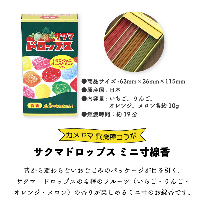 | 名称 | カメヤマコラボ線香 サクマドロップス |