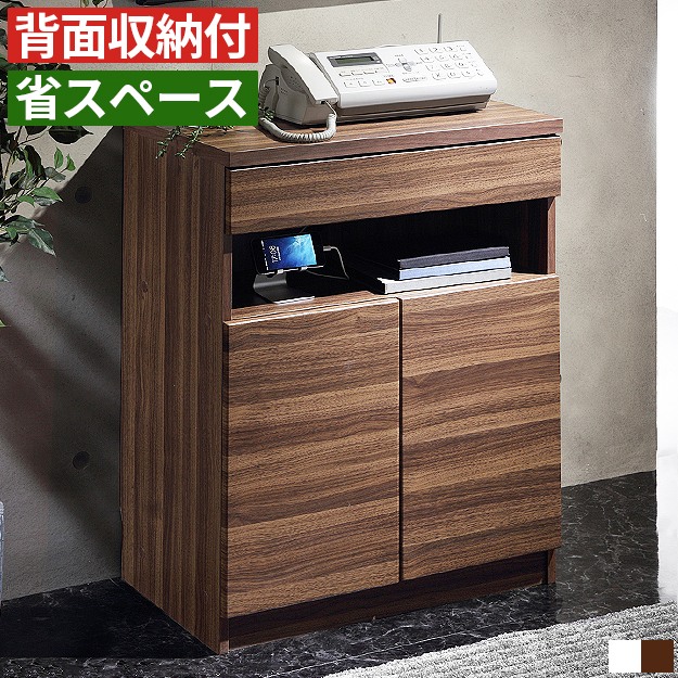 電話台 ルーター収納 ファックス台 キャビネット 木製 幅60cm おしゃれ スリム リビング収納 収納家具 配線収納 背面収納 引き出し 扉付き モデム 収納ラック
