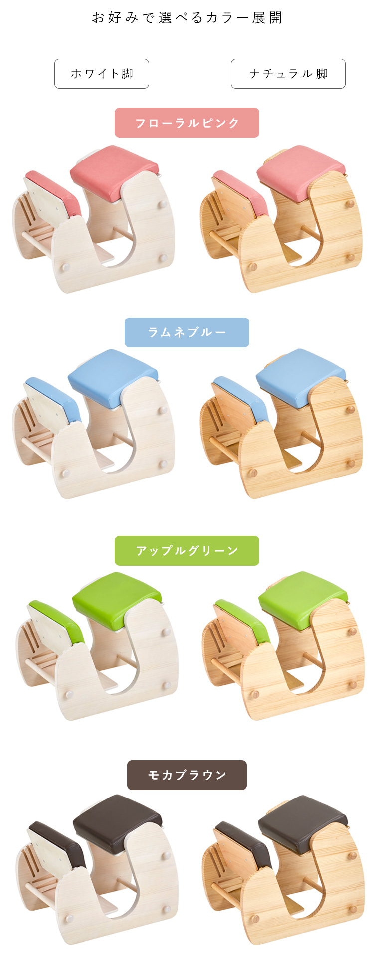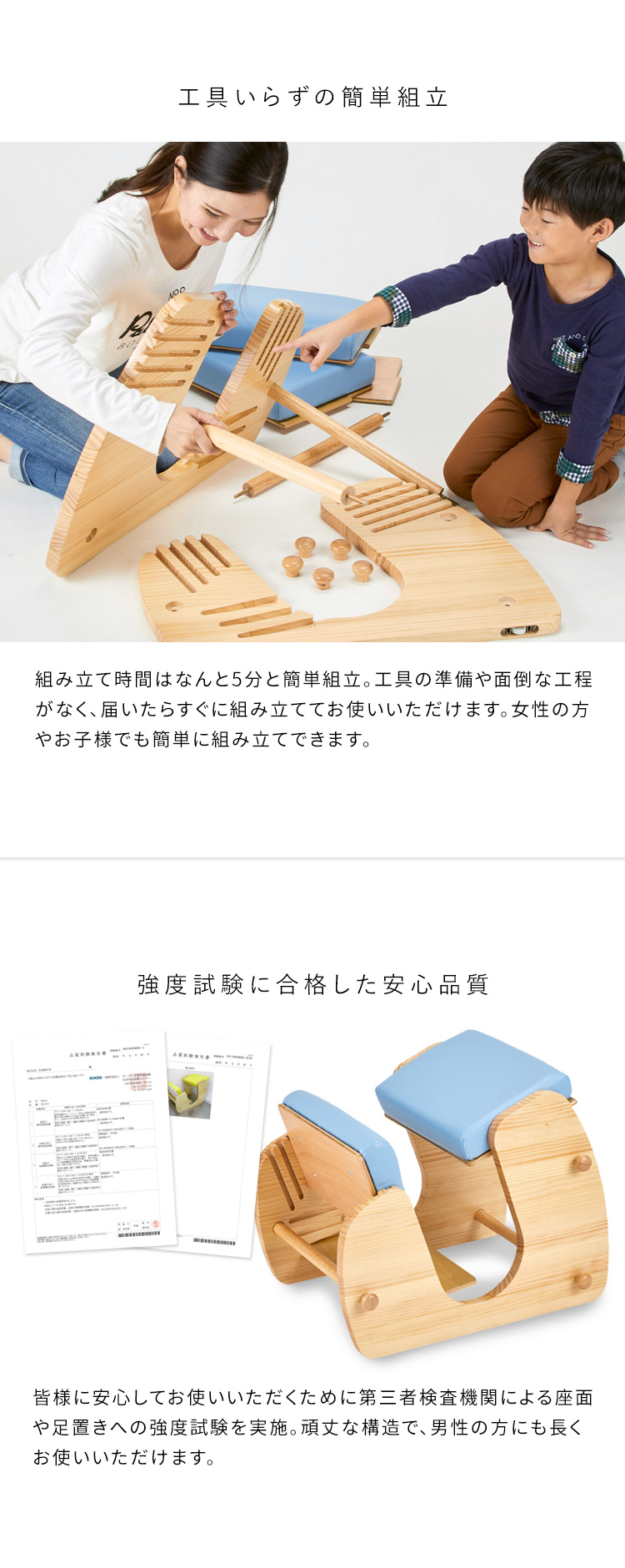 背筋を伸ばす効果はそのままに体重を「お尻/すね/足うら」の3点で支える構造に改良。