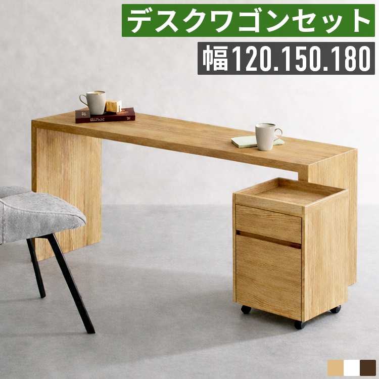 デスク ワゴン セット パソコンデスク 幅120 幅150 幅180 奥行40 コの字型 スリム 省スペース 木製 頑丈 キャスター付き 2段 引き出し 収納 デスク下収納 学習机