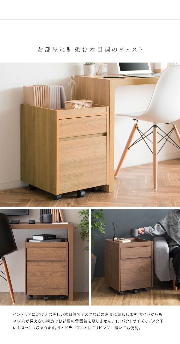 ■キャスター付きの木目調サイドチェスト