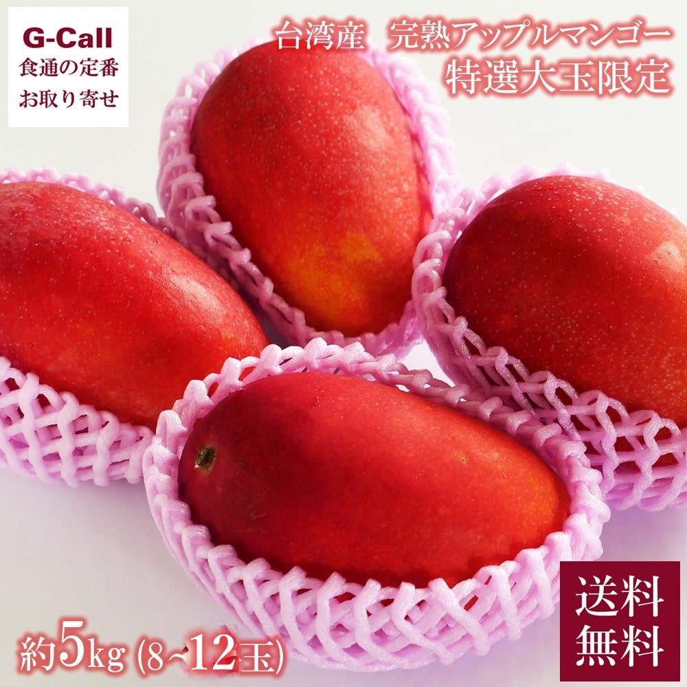 内容:台湾産 完熟アップルマンゴー 特選大玉限定 約5kg 8〜12玉