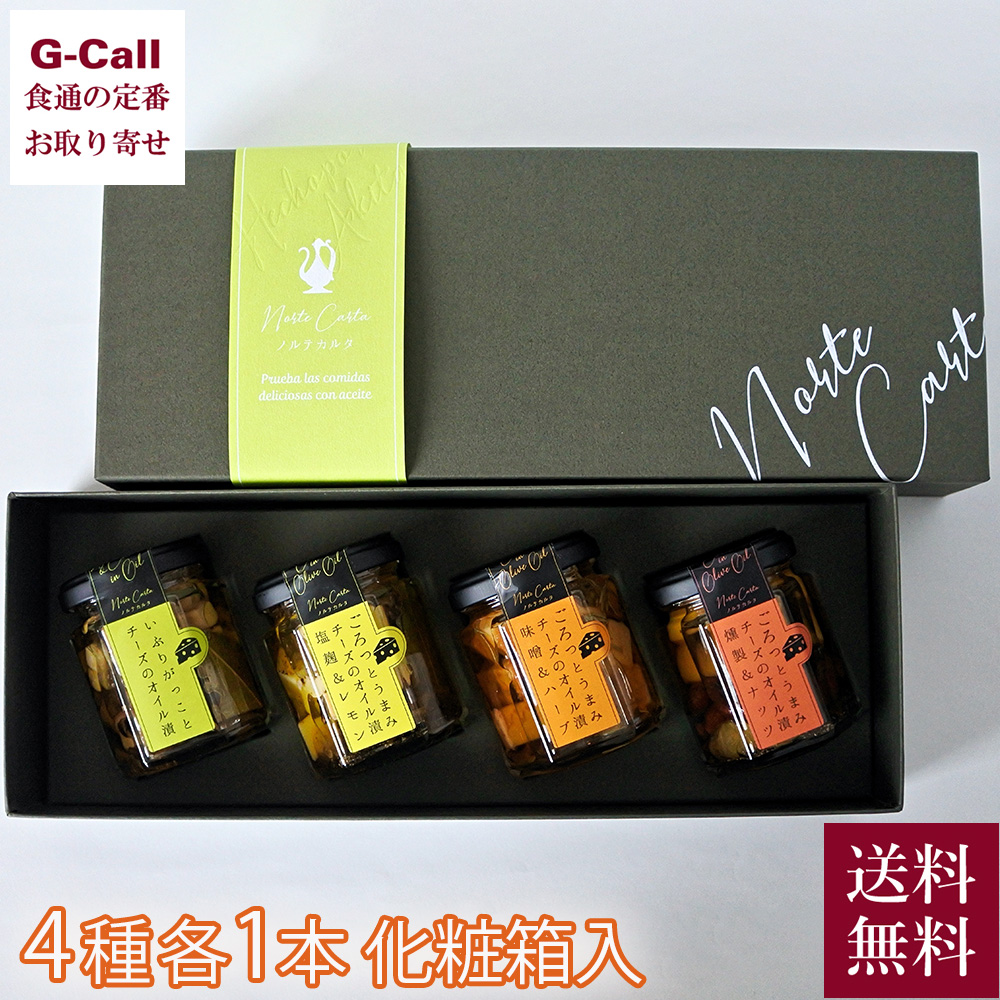 NorteCarta ごろっとうまみ チーズのオイル漬 4種セット 化粧箱入り 送料無料 瓶詰め ノルテカルタ 秋田 魚醤 ローズマリー アーモンド しょっつる 塩こうじ