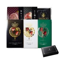 内容量:ハモンイベリコレアルベジョータ4年熟成生ハム50g、イベリコベジョータ30ヶ月熟成生ハム50g、セラーノ18ヶ月熟成生ハム50g、和牛サーロイン生ハム約45g、国産鴨モモ生ハム40g、イベリコ豚ベーコン50g