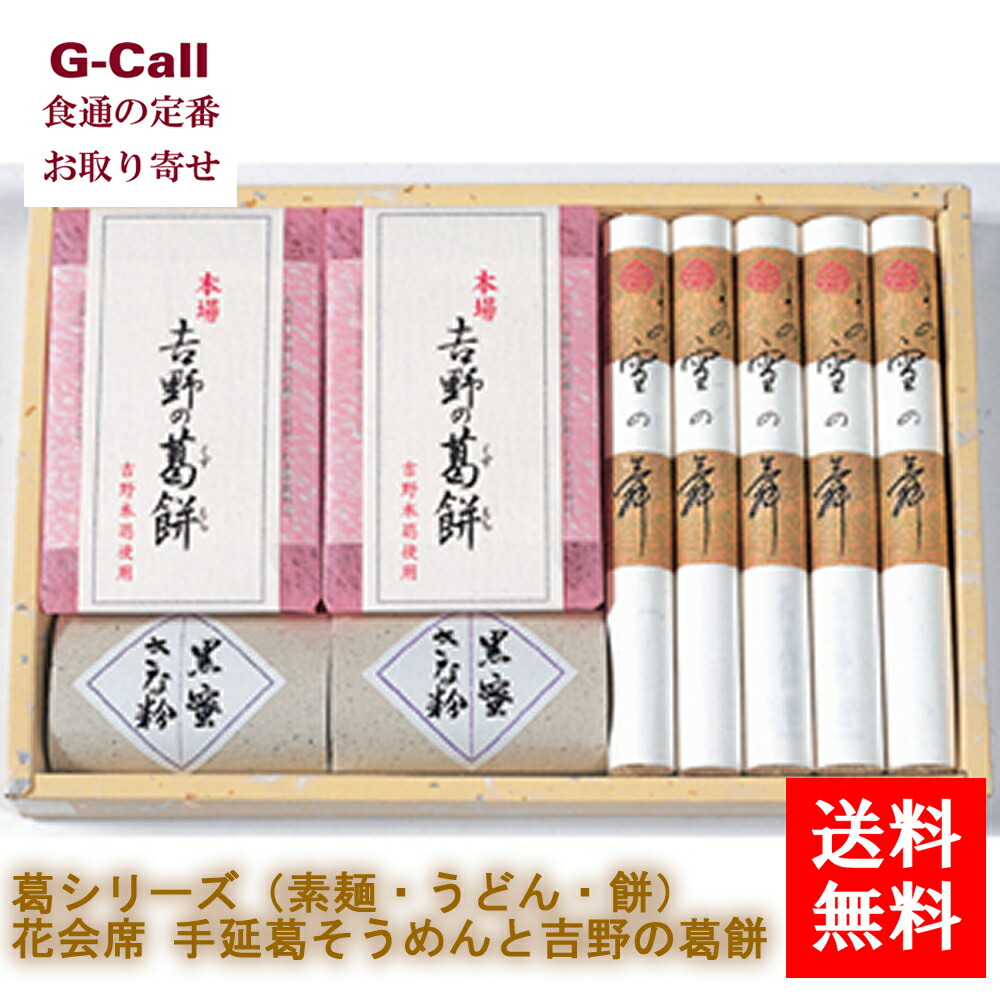 坂利製麺所 葛シリーズ 花会席 手延葛そうめんと吉野の葛餅 手延べ葛素麺 5束 吉野の葛餅 2個 送料無料 和食 麺類 お取り寄せ グルメ 贈答 そうめん くずもち