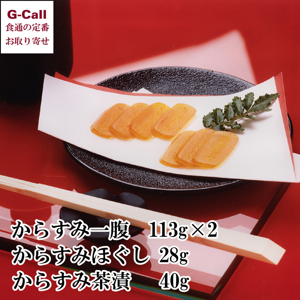 内容量:からすみ一腹113g×2、からすみほぐし28g、からすみ茶漬40g