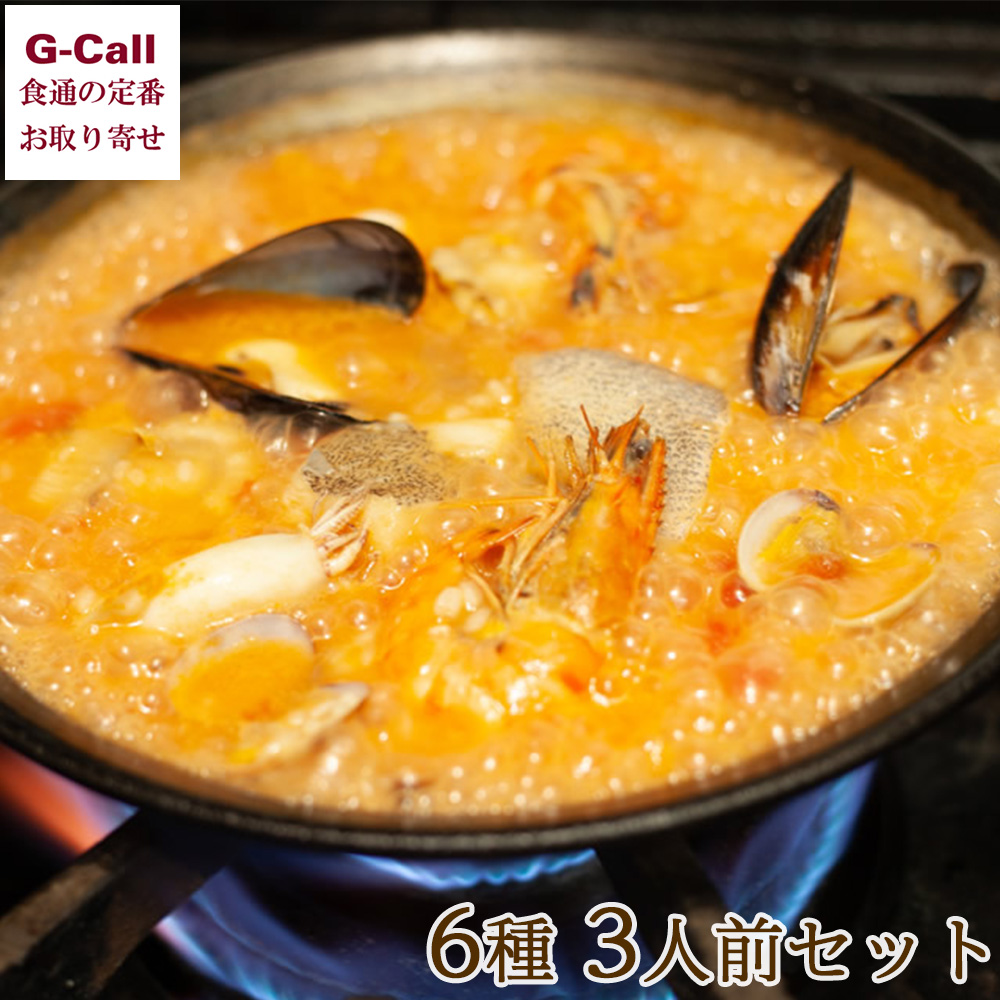 エルカミーノ パエリアセット3人前 Cセット 6種 北海道・四国/九州・沖縄送料別 魚介 イカスミ パエリア アヒージョ クリーム煮 スペイン料理 お手軽 お取り寄せ