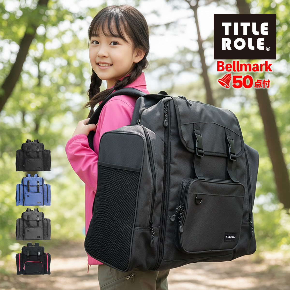 TITLE ROLE リュック 林間バッグ キャンプ 林間学校 自然教室 合宿 旅行 防災用 大容量 軽量 丈夫 シンプル 小学生 中学生