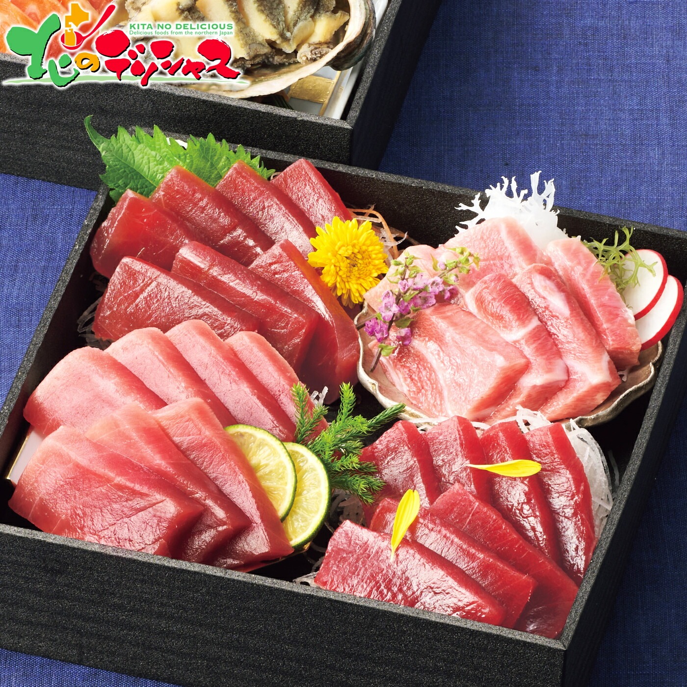 ■商品内容:本マグロ大トロ柵・本マグロ赤身柵(本まぐろ:地中海産)・メバチマグロ中トロ柵・メバチマグロ赤身柵(メバチマグロ:韓国産)100g×各1※(約2〜3人前)解凍した商品は、お早めにお召し上がりください。