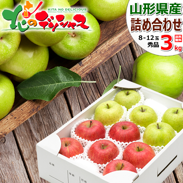 【予約】山形県産 りんご サンふじ&王林 詰め合わせ 3kg (秀品/8〜12玉入り) 2026 旬 リンゴ 冬ギフト お歳暮 ギフト 果物 フルーツ 爆買 お取り寄せ