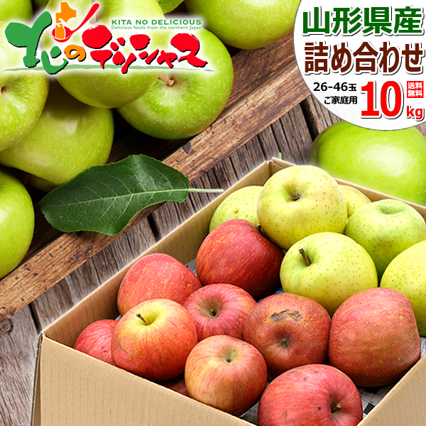 【予約】山形県産 ご家庭用 りんご サンふじ&王林 10kg (訳あり/26玉〜46玉入り) 旬 リンゴ 訳あり 自宅用 果物 フルーツ 産地直送 爆買 お取り寄せ
