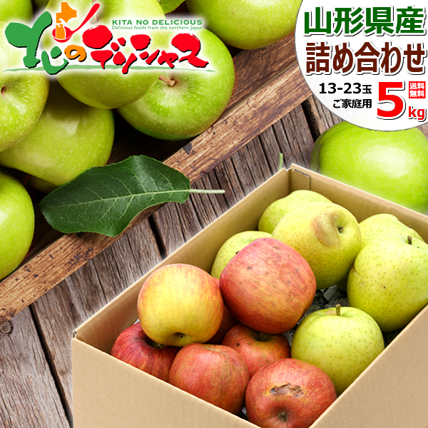 【予約】山形県産 ご家庭用 りんご サンふじ&王林 5kg (訳あり/13玉〜23玉入り) 旬 リンゴ 訳あり 自宅用 果物 フルーツ 産地直送 爆買 お取り寄せ