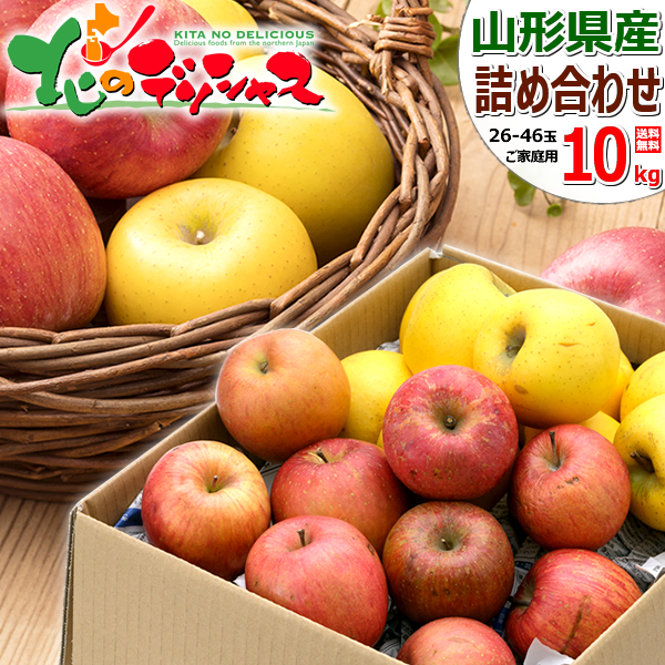 【予約】山形県産 ご家庭用 りんご サンふじ&シナノゴールド 10kg (訳あり/26玉〜46玉入り) リンゴ 訳あり わけあり 家庭用 果物 フルーツ お取り寄せ