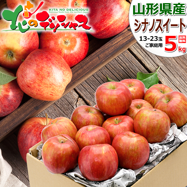 【予約】山形県産 ご家庭用 りんご シナノスイート 5kg (訳あり/13玉〜23玉入り) 青森県産 産地リレー わけあり 山形県 産地直送 お取り寄せ