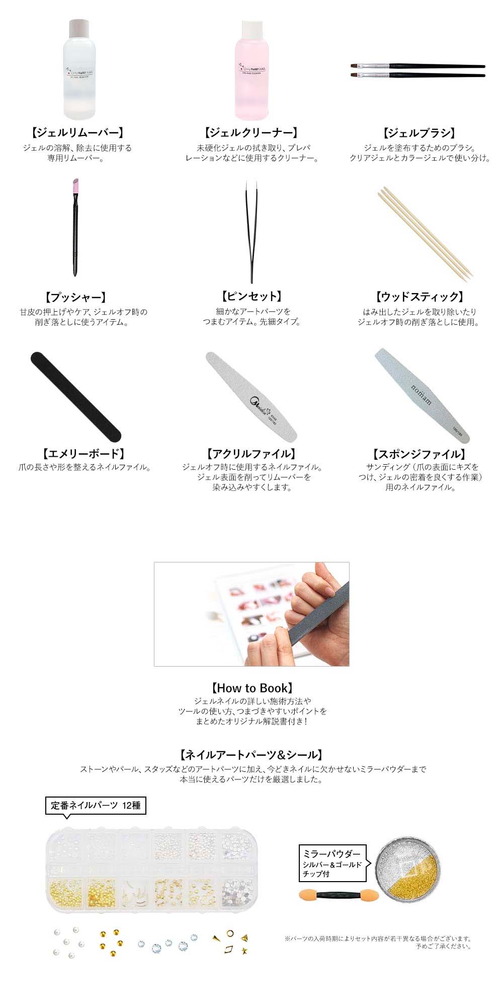 ジェル&ネイルツールをまとめてお届け! カラージェルはもちろん、ベースジェルにトップジェル、ジェルオフ用のリムーバーや下準備に使うクリーナー、プッシャー、ファイルetc… とにかくツールがたくさん必要なセルフジェル。 | |