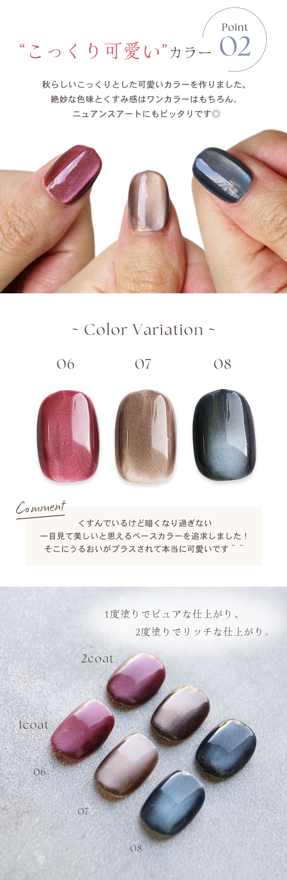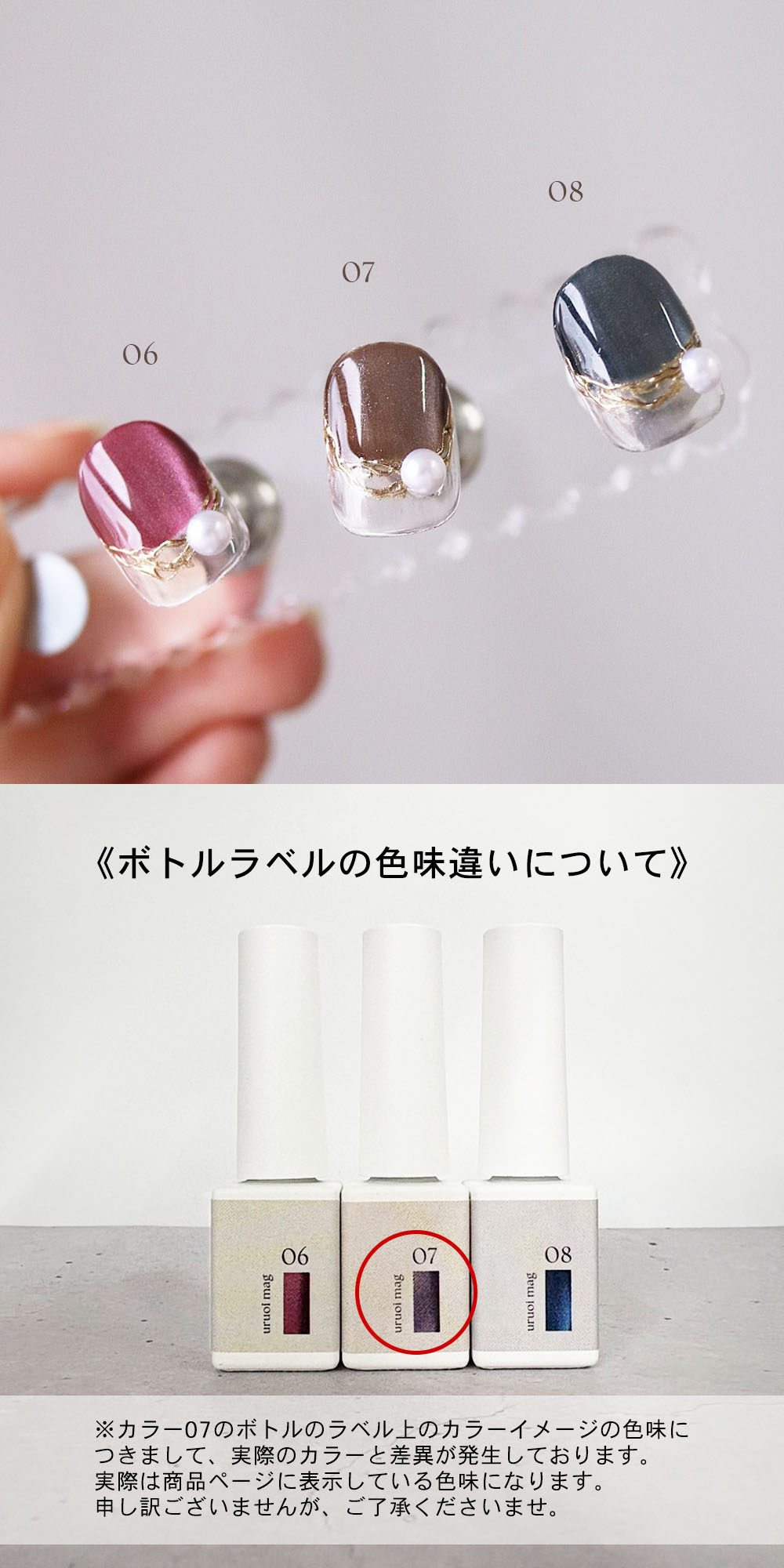 | 注意事項 | べースジェル塗布後、2層目にご使用ください。 |