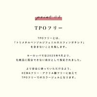 | 全成分 | ポリウレタン−110、メタクリル酸インボルニル、トリメチルベンゾイルジトリルホスフィンオキシド、テトラメルカプト酪酸ペンタエリスリチル、ヒドロキシクロヘキシルフェニルケトン、シリカ、PEG/PPG-20/22ブチルエーテルジメチコン[+/-]酸化チタン、酸化鉄、赤226、黄4、黄5、青1、青404、グンジョウ |