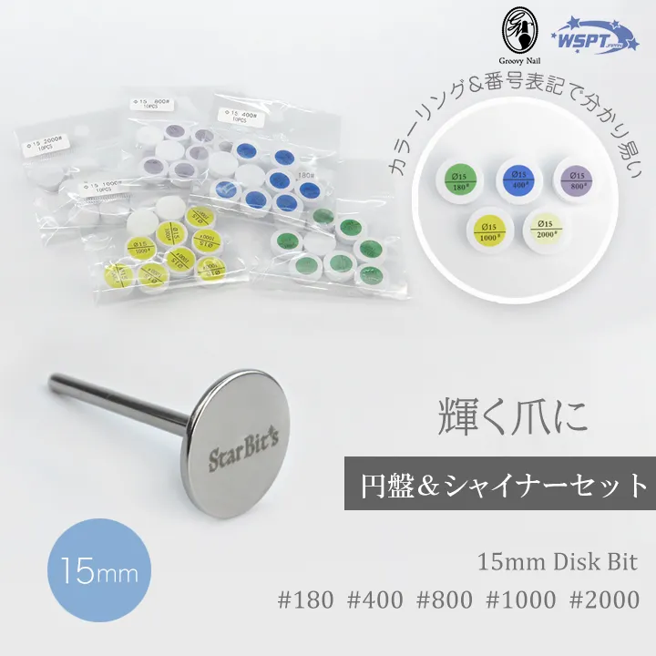 WSPT 鯨岡先生おすすめ! 円盤シャイナーセット 円盤ビット15mm&シャイナー グリッド5種類入り ケア【ネコポス対応】