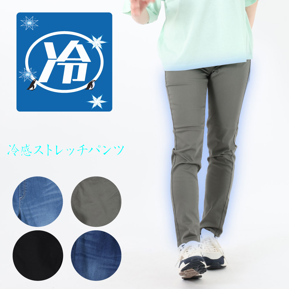 レディース ボトムス パンツ接触冷感 デニム チノ 冷感パンツ スキニー レギンス 婦人 ウエストゴム ストレッチ レギパン 大きいサイズ