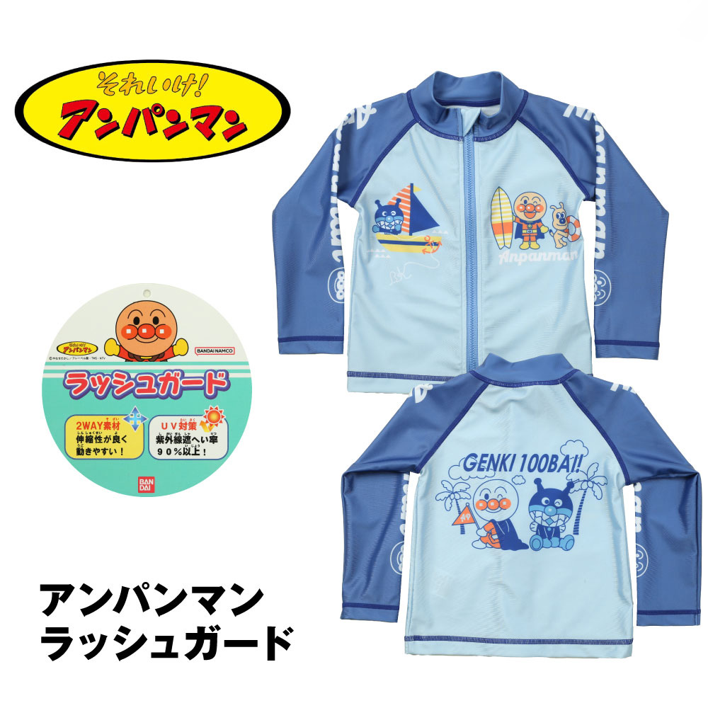 アンパンマン 男の子 長袖ラッシュガード 水着 Anpanman ブルー 90 95 100 ベビー キャラクター UV 日焼け対策 プール 海 男児