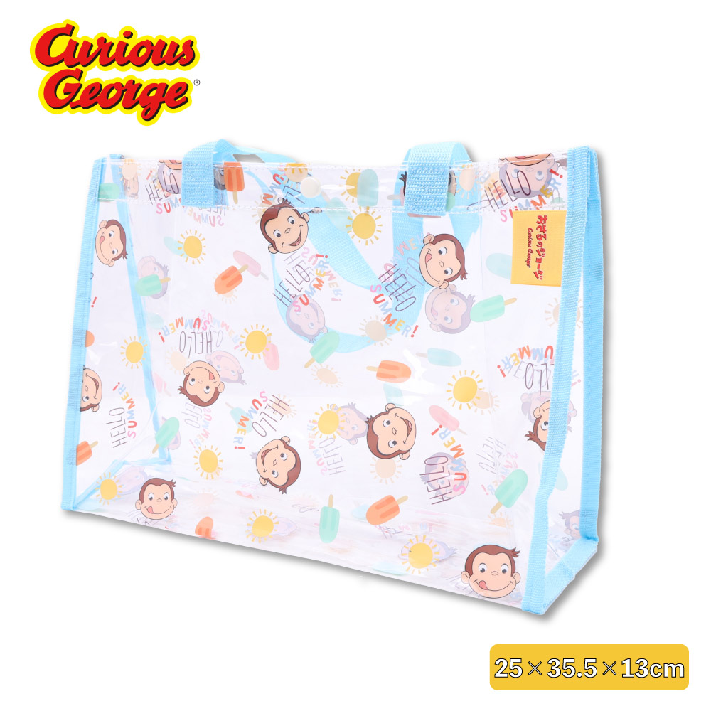 おさるのジョージ プールバッグ ビーチバッグ 角型 透明バッグ キャラクター スイムバッグ キッズ 子供 ビニールバッグ 水泳 プール 通園 通学