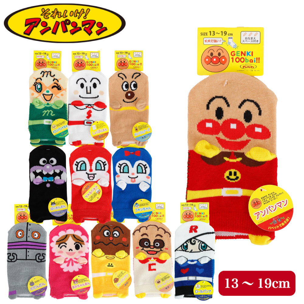 アンパンマン 9〜14cm ソックス 靴下 履育 パペット 子供 キッズ すべり止め しめつけ軽減 ばいきんまん ドキンちゃん コキンちゃん 福助