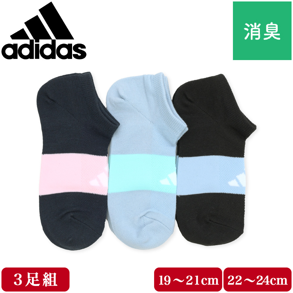 adidas アディダス ソックス キッズ レディース 靴下 3足組 スニーカー丈 ガールズ 婦人 メッシュ 通気性 消臭 補強 スポーツ 部活 運動