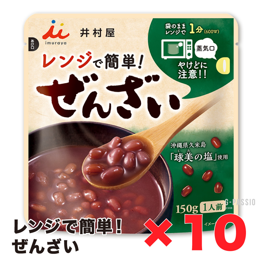 井村屋 レンジでかんたん ぜんざい 10個セット 健康 栄養 行動食 キャンプ 携行 保存 常温 おしるこ