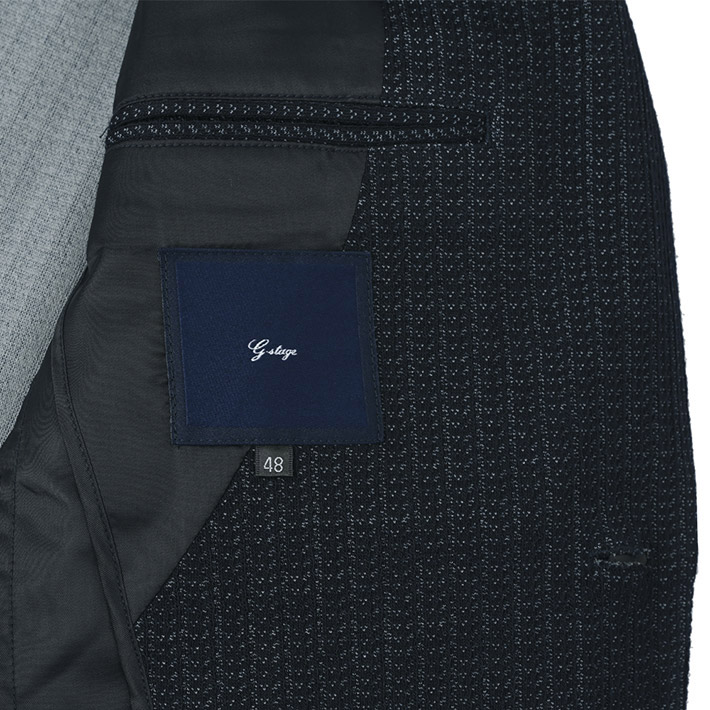 | 背裏生地と同生地のポケットチーフ付 | 両身頃の内側にもポケット |