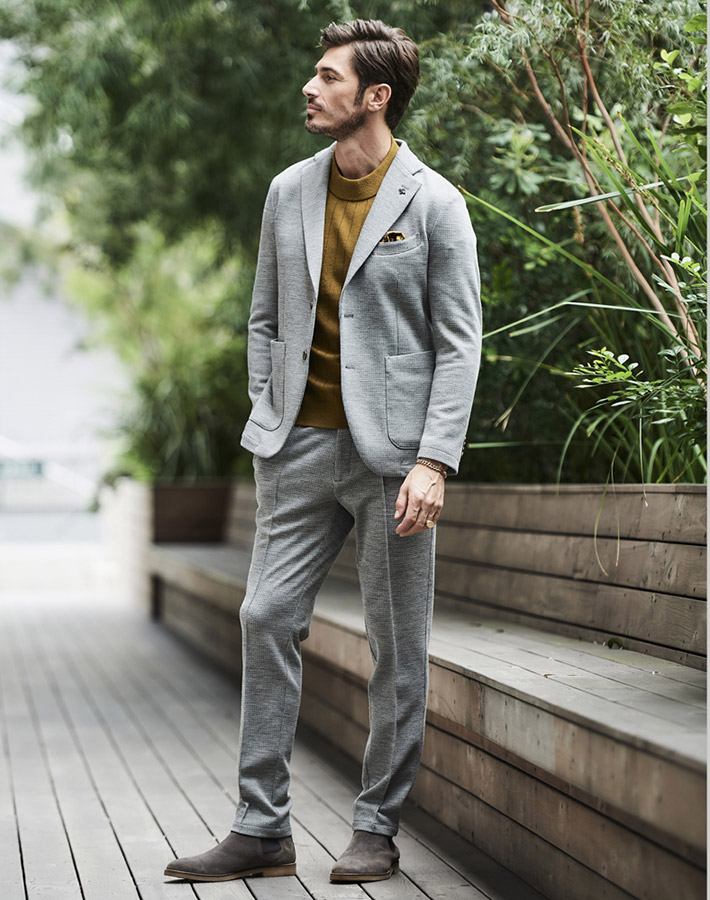 合わせたジャケパンスタイルでカジュアルに着流すのもお奨めです。