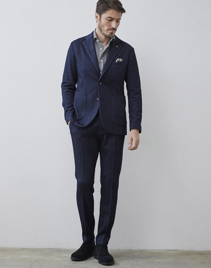 ほど良い肉厚感のウール混素材で、高級感と大人の品ある表情でありながら、体に沿って伸縮する快適な着心地を併せ持ったジャケットです。