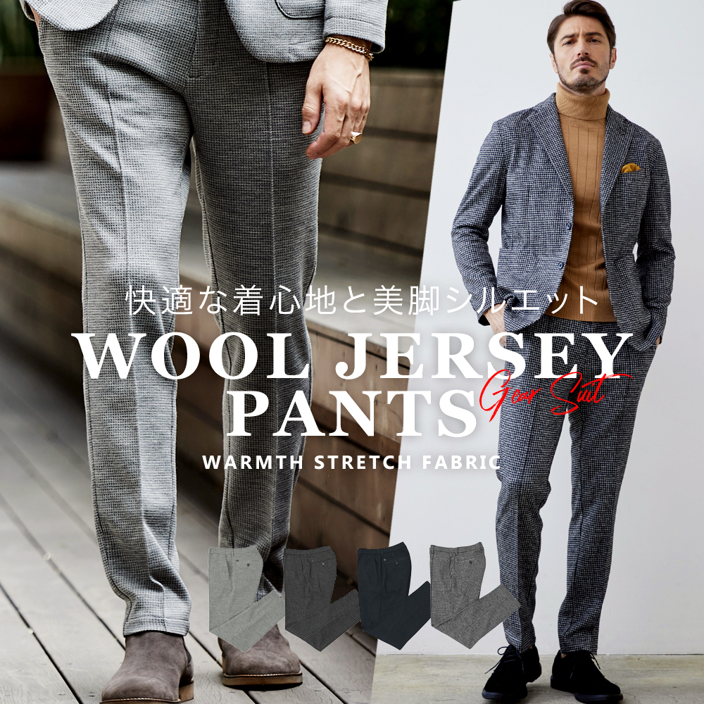 ウーリーな大人の品に心地良さをプラスしたウールジャージのスラックス