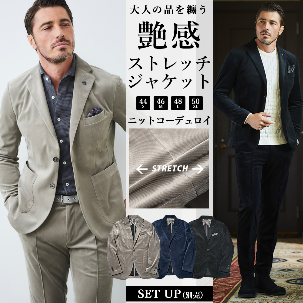 軽くてシワになりにくいポリエステル素材にストレッチ性をプラスした、軽量でソフトな着心地が特徴のニットコーデュロイジャケット。