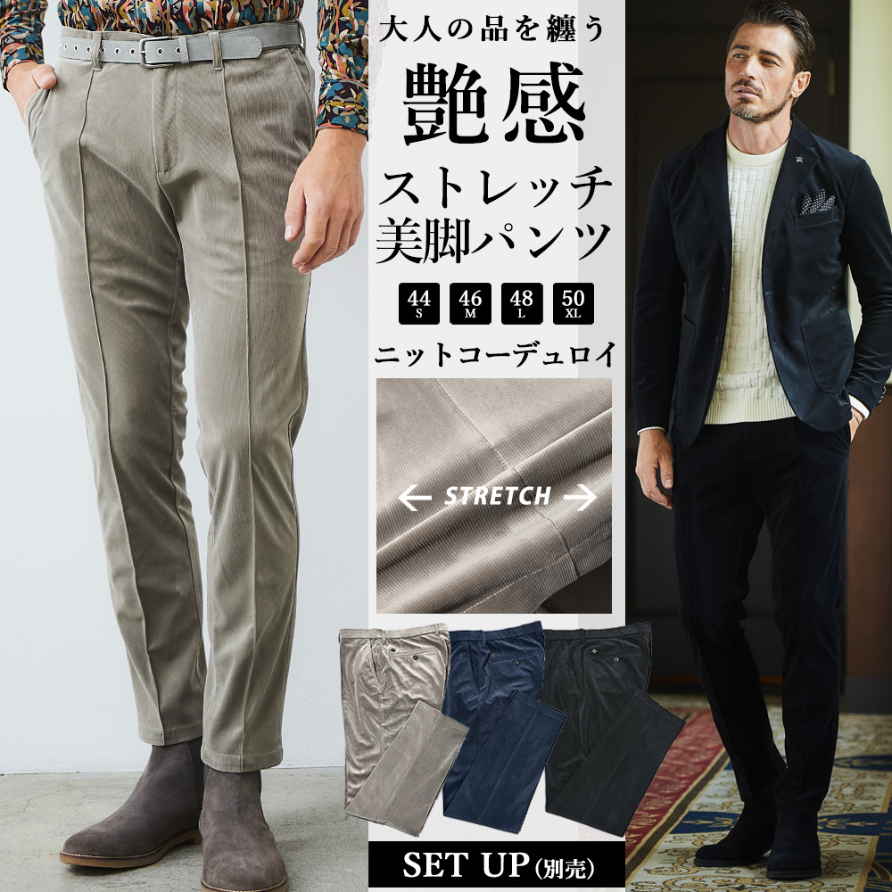 軽量ソフトで上品な艶感が魅力のニットコーデュロイパンツ