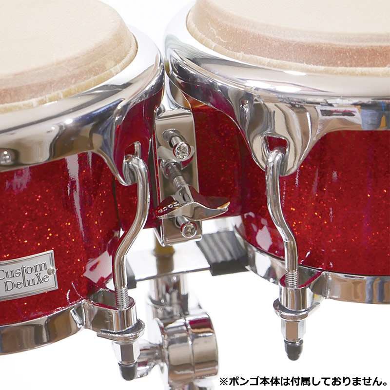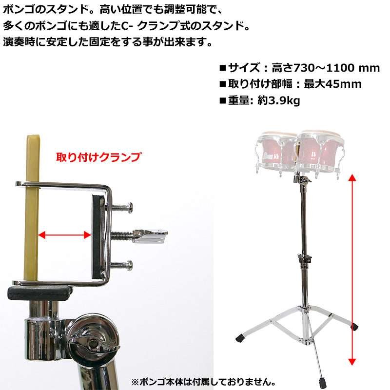 ボンゴのスタンド。高い位置でも調整可能で、多くのボンゴにも適したC- クランプ式のスタンド。演奏時に安定した固定をする事が出来ます。