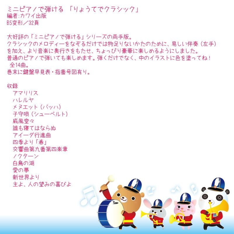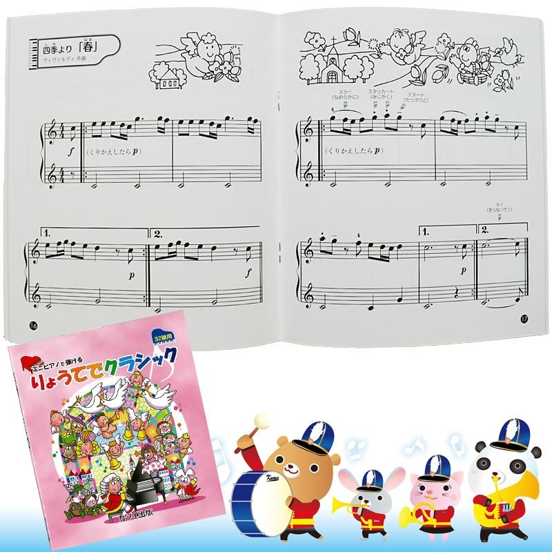 ミニピアノで弾ける「りょうてでクラシック」32鍵用 0237 楽しくリトミック 将来は天才ピアニスト 塗り絵もできる! KAWAI カワイ トイピアノ カワイ出版